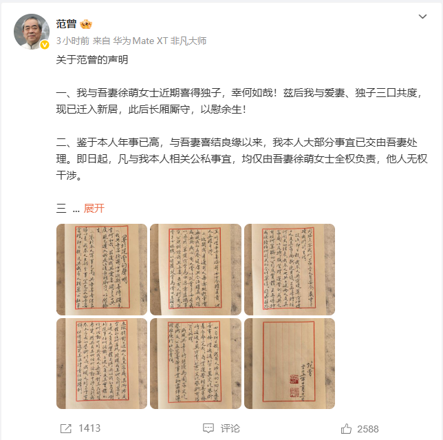 还有个容易被忽略的点是继承权。即便范曾声明断绝关系,若没有通过遗嘱明确排除女儿和继子的继承权,那么在其去世后,女儿作为第一顺序继承人,仍有权依法继承遗产;继子若形成了拟制血亲关系,也同样享有继承权。只有当范曾立下合法有效的遗嘱,明确表示不让二人继承,才能排除其法定继承权,这也说明“断绝关系” 和 “剥夺继承权” 是两回事,不能混为一谈。